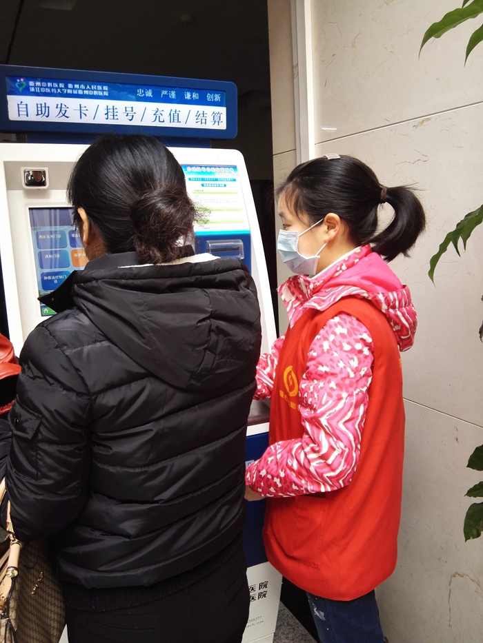 ??? ?徐鑫洋、湯美娟、湯玉卿、陳夏雯、徐嘉妮、葉佳怡、周育存、汪潔瓊、李興江、余照坤、徐家梅、彭紫媛、陳安琪等13人在衢州市人民醫(yī)院做志愿者,主要來自寒假學生志愿者。 志愿者們主要為患者指路引導(dǎo),陪伴行動不便、年老體弱患者就診,指導(dǎo)患者自助服務(wù)機使用方法,引導(dǎo)患者化驗前取號、打印化驗單,協(xié)助門診大廳工作人員疏導(dǎo)病人。