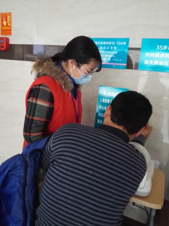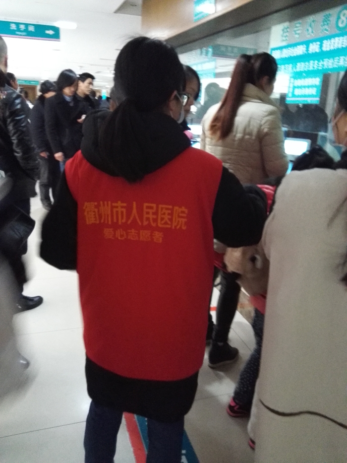 ??? 余慧晨、徐思惠、張莘陟、徐安琪、呂丹、陳玉瑩、徐怡、周孟穎、周慧娟、毛如意、鄭琦慧、葉佳蕓、王喬梅等13人在衢州市人民醫(yī)院做志愿者,主要來(lái)自寒假學(xué)生志愿者。 志愿者們主要為患者指路引導(dǎo),陪伴行動(dòng)不便、年老體弱患者就診,指導(dǎo)患者自助服務(wù)機(jī)使用方法,引導(dǎo)患者化驗(yàn)前取號(hào)、打印化驗(yàn)單,協(xié)助門(mén)診大廳工作人員疏導(dǎo)病人。