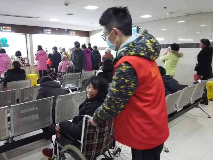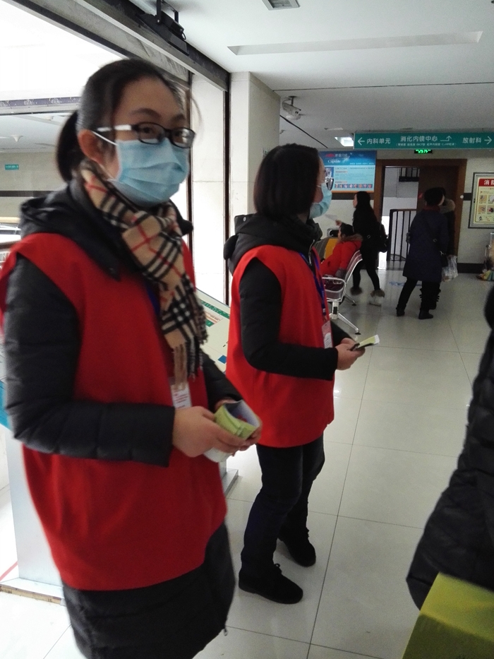 ??? 余慧晨、徐思惠、張莘陟、徐安琪、呂丹、陳玉瑩、徐怡、周孟穎、周慧娟、毛如意、鄭琦慧、葉佳蕓、王喬梅等13人在衢州市人民醫(yī)院做志愿者,主要來自寒假學(xué)生志愿者。 志愿者們主要為患者指路引導(dǎo),陪伴行動不便、年老體弱患者就診,指導(dǎo)患者自助服務(wù)機(jī)使用方法,引導(dǎo)患者化驗前取號、打印化驗單,協(xié)助門診大廳工作人員疏導(dǎo)病人。