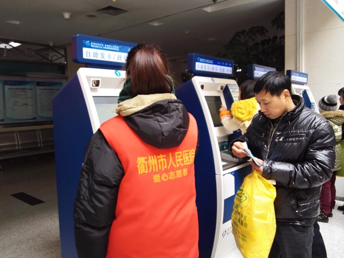 ??? 吳暢、王宜、祝文斌、羅霽萍、吳琛凱、劉翌純、陳侃琪、吳利婷、毛豐怡、毛佳雯、汪鄭妙、朱夢(mèng)珂、鄭思綺、徐諾、王慧佳、廖周佳、周穎等17人在衢州市人民醫(yī)院做志愿者,主要來自寒假學(xué)生志愿者, 志愿者們主要為患者指路引導(dǎo),陪伴行動(dòng)不便、年老體弱患者就診,指導(dǎo)患者自助服務(wù)機(jī)使用方法,引導(dǎo)患者化驗(yàn)前取號(hào)、打印化驗(yàn)單,協(xié)助門診大廳工作人員疏導(dǎo)病人。
