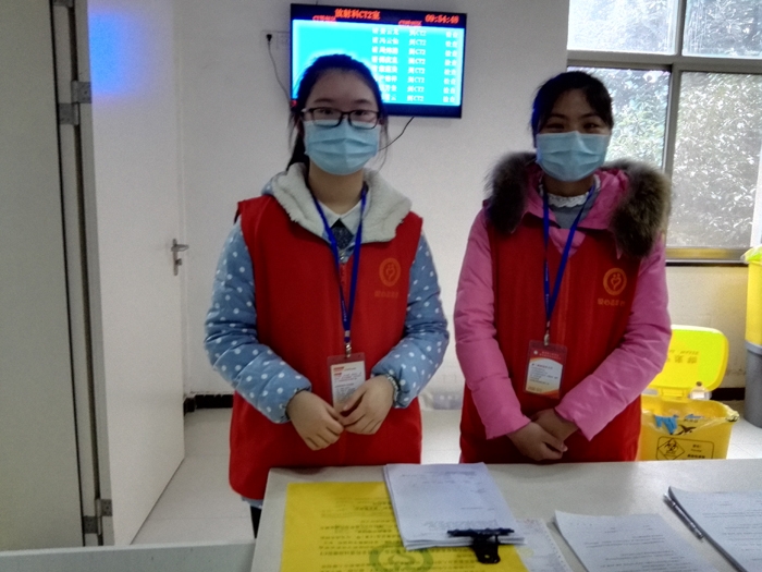 ??? 吳暢、王宜、祝文斌、羅霽萍、吳琛凱、劉翌純、陳侃琪、吳利婷、毛豐怡、毛佳雯、汪鄭妙、朱夢珂、鄭思綺、徐諾、王慧佳、廖周佳、周穎、潘正照、翁文淵、丁潔元等20人在衢州市人民醫(yī)院做志愿者,主要來自寒假學(xué)生志愿者, 志愿者們主要為患者指路引導(dǎo),陪伴行動不便、年老體弱患者就診,指導(dǎo)患者自助服務(wù)機使用方法,引導(dǎo)患者化驗前取號、打印化驗單,協(xié)助門診大廳工作人員疏導(dǎo)病人。