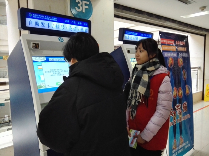 ??? 吳暢、劉翌純、羅霽萍、吳琛凱等4人在衢州市人民醫(yī)院做志愿者,志愿者們主要為患者指路引導(dǎo),陪伴行動(dòng)不便、年老體弱患者就診,指導(dǎo)患者自助服務(wù)機(jī)使用方法,引導(dǎo)患者化驗(yàn)前取號(hào)、打印化驗(yàn)單,協(xié)助門診大廳工作人員疏導(dǎo)病人。