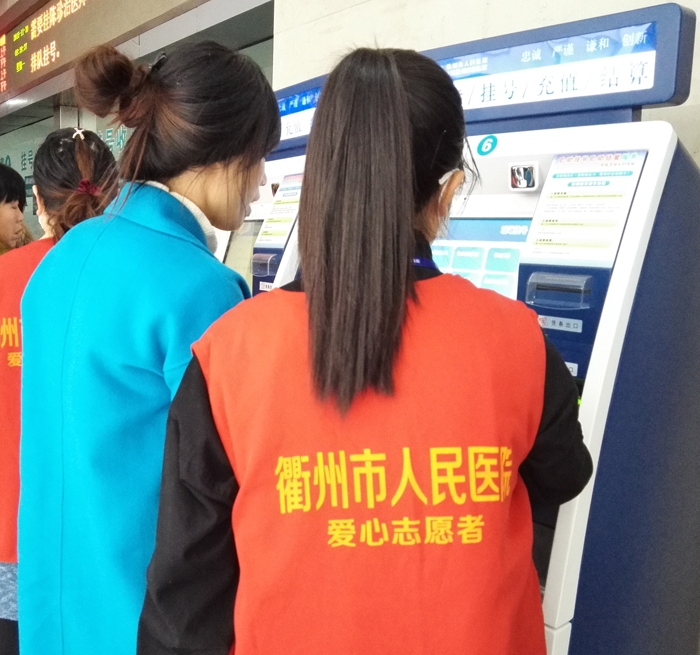 ??? 王建中、王宇寧、朱厚清、羅益芳、楊君梅、曾琳琳、羅育蘭、張俊晴等8人在衢州市人民醫(yī)院做志愿者,他們服務(wù)累計(jì)時(shí)間400余小時(shí)。志愿者們主要在門診大廳一樓至五樓接受患者咨詢、引導(dǎo)自助服務(wù)機(jī)使用方法、流動(dòng)服務(wù),幫助身體虛弱及身心障礙者等提供引導(dǎo)、協(xié)助門診大廳工作人員疏導(dǎo)病人。