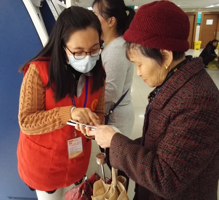 志愿者日志44 文章來源:門診部 作者: 點(diǎn)擊數(shù):8263 更新時(shí)間:2015-12-18 2015.年12月13日???? 星期日 ??? 周淑瑩、張?zhí)鹛?、葉玲榮、周淑華等4人在衢州市人民醫(yī)院做志愿者。志愿者們主要在門診大廳一樓至五樓接受患者咨詢、引導(dǎo)自助服務(wù)機(jī)使用方法、流動(dòng)服務(wù)、幫助身體虛弱及身心障礙者等提供引導(dǎo)、協(xié)助門診大廳工作人員疏導(dǎo)病人。 ? 上一篇: 衢州市人民醫(yī)院愛心服務(wù)中心(試行) 下一篇: 在市人民醫(yī)院感受真情------一位志愿者在醫(yī)院服務(wù)感言