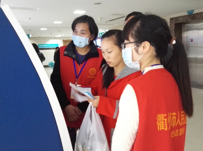??? 丁潔元、許小風(fēng)、劉芳芳、譚惠娟、周素珍、汪超萍、章紅娟、王慧娟、翁文淵、胡曉芬、羅益芳、潘正照等12人在衢州市人民醫(yī)院做志愿者,他們累計(jì)服務(wù)時(shí)間600余小時(shí)。志愿者們主要在門診大廳一樓至五樓接受患者咨詢、引導(dǎo)自助服務(wù)機(jī)使用方法、流動(dòng)服務(wù),幫助身體虛弱及身心障礙者等提供引導(dǎo)、協(xié)助門診大廳工作人員疏導(dǎo)病人。