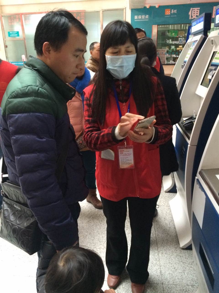 ??? 潘光輝、余雯、潘新華、鄭良貴、胡圣平、張麗萍、章建霞、章翠翠、柴秀琴等9人在衢州市人民醫(yī)院做志愿者。志愿者們主要在門診大廳一樓至五樓接受患者咨詢、引導(dǎo)自助服務(wù)機(jī)使用方法、流動服務(wù)、幫助身體虛弱及身心障礙者等提供引導(dǎo)、協(xié)助門診大廳工作人員疏導(dǎo)病人。