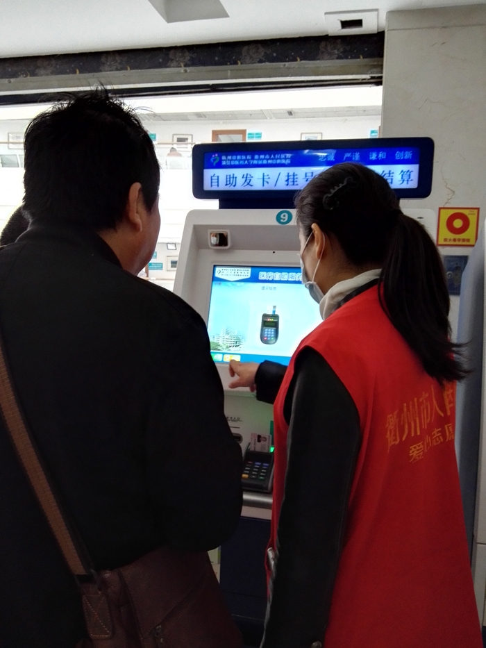 ???? 2015年11月3日,吳善水、胡曉芬、嚴(yán)紅雁、何君亞、陳佳麗、胡澤富、何建陽(yáng)、曹敏、楊建琴、周莉芬、邱武佩、王金仙、周土蘭、翁文淵等14人在衢州市人民醫(yī)院做志愿者,他們累計(jì)服 務(wù)時(shí)間500余小時(shí)。志愿者們主要在門(mén)診大廳一樓至五樓接受患者咨詢(xún)、引導(dǎo)自助服務(wù)機(jī)使用方法、流動(dòng)服務(wù)、幫助身體虛弱及身心障礙者等提供引導(dǎo)、協(xié)助門(mén)診大廳工作人員疏導(dǎo)病人。