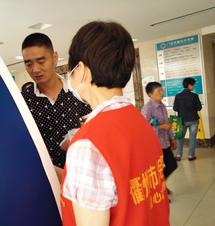 ??? 2015年10月30日,葉時楫、陸牡丹、桂慧娟、方月升、崔榮紅、徐佳、王琍穎、黃玲等8人在衢州市人民醫(yī)院做志愿者,累計服務(wù)時間300余小時。主要在門診大廳一樓至五樓接受患者咨詢、引導(dǎo)自助服務(wù)機使用方法、流動服務(wù),幫助身體虛弱及身心障礙者等提供引導(dǎo)、協(xié)助門診大廳工作人員疏導(dǎo)病人。