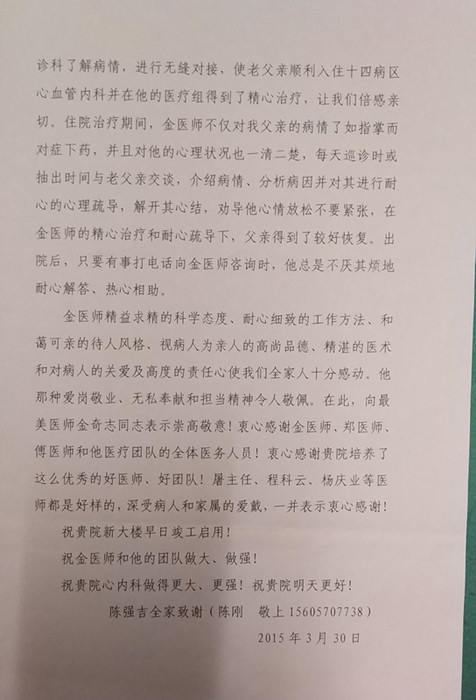 感謝信(致心血管內(nèi)科金奇志醫(yī)師) 文章來(lái)源: 作者: 點(diǎn)擊數(shù):6863 更新時(shí)間:2015-03-30 ? 上一篇: 感謝信 下一篇: 感謝信(致余俊華醫(yī)生)