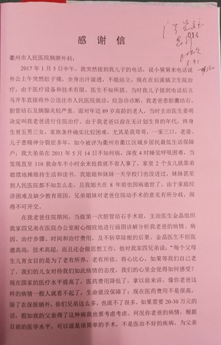 感謝信(致余俊華醫(yī)生)