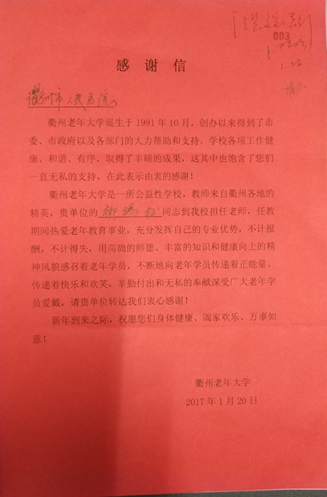 感謝信(致柳錫松主席)