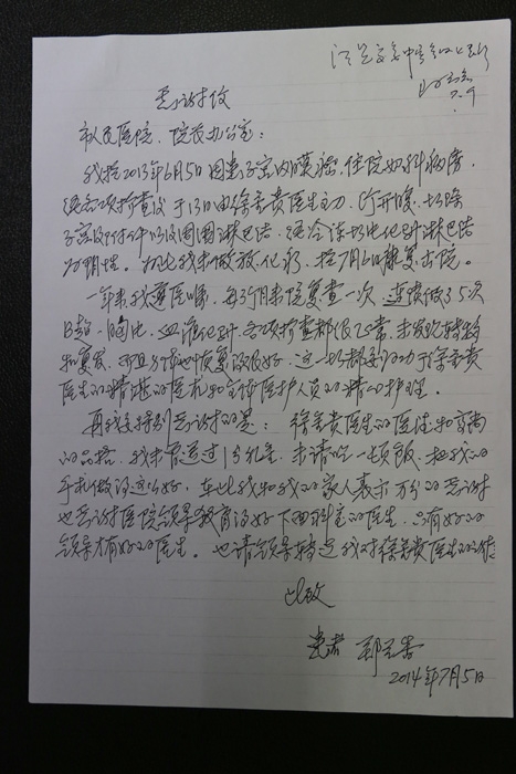 感謝信(致婦科徐金貴醫(yī)生) 文章來(lái)源: 作者: 點(diǎn)擊數(shù):10059 更新時(shí)間:2014-07-06 上一篇: 感謝信 下一篇: 感謝信(致余俊華醫(yī)生)