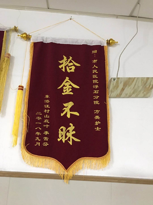 ??? “丟錢(qián)是小事,里面各種證件丟了可就麻煩咯,感謝方英護(hù)士!”近日,汪村鄉(xiāng)的李女士親自將錦旗送至衢州市人民醫(yī)院感染科方英護(hù)士手中。