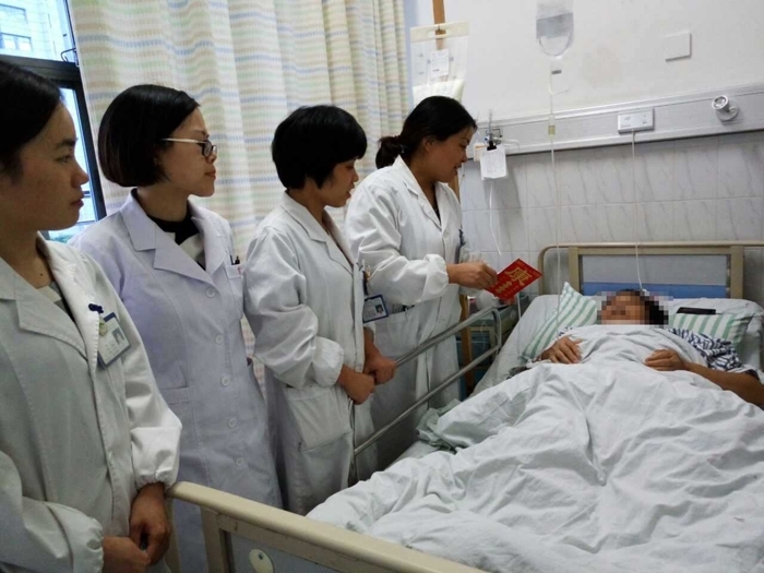 ??? 因?yàn)椴∏榉磸?fù),黃大姐已經(jīng)是夏利花的老病人了,一提起她,夏主任總是十分感概:“每次復(fù)診、住院,身邊總是有她丈夫陪著,這次住院黃大姐很猶豫,她覺(jué)得自己拖累了這個(gè)家庭,可是又很想再多活幾年,看到兩個(gè)兒子成家”。經(jīng)歷了兩次大手術(shù)和多次的化療,再加上高昂的治療費(fèi)用,已經(jīng)讓這個(gè)家庭一貧如洗。再次手術(shù)的風(fēng)險(xiǎn)很大,繼續(xù)治療還是放棄手術(shù)讓一家人陷入兩難。經(jīng)過(guò)幾番掙扎,黃大姐和她的丈夫決定請(qǐng)杭州專家手術(shù)。在準(zhǔn)備手術(shù)的同時(shí),夏利花自發(fā)組織診療組的同事為黃大姐募捐。