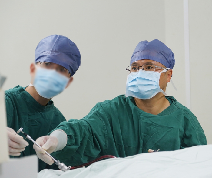 ??? 2013年7月,他服從醫(yī)院的安排,遠(yuǎn)赴貴州六枝特區(qū)人民醫(yī)院支援,在那里的半個(gè)月里,他開了20多臺(tái)手術(shù),用微創(chuàng)技術(shù)搶救了一名前列腺電切術(shù)后大出血休克、輸尿管結(jié)石并發(fā)膿毒性休克和急性梗阻性腎功能衰竭的患者,獲得了他們醫(yī)院的好評(píng),現(xiàn)在還經(jīng)常打電話過(guò)來(lái)咨詢。支援結(jié)束,一下火車就直接趕到手術(shù)室,參加手術(shù)。
