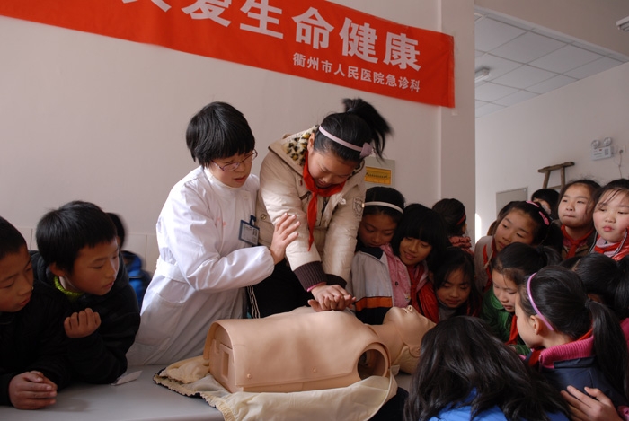 ??? 她熱心參與公益事業(yè),是一名紅十字會志愿者。2008年就取得中國紅十字會頒發(fā)的《救護(hù)培訓(xùn)師資證書》。她經(jīng)常利用節(jié)假日到社區(qū)、學(xué)校、鄉(xiāng)村、銀行、消防支隊(duì)等地普及急救知識和急救技能。僅2011年她就進(jìn)行了7次現(xiàn)場救護(hù)培訓(xùn),來自社會不同層面的1100余名人員聽過她講的課(其中衢州市實(shí)驗(yàn)學(xué)校、鹿鳴學(xué)校七里校區(qū)、衢江四小的師生就有800名左右),通過多媒體教學(xué)與現(xiàn)場操作示范相結(jié)合方法讓參加培訓(xùn)的人員很快學(xué)會緊急情況下該如何進(jìn)行正確的急救,學(xué)會了胸外心臟按壓、口對口吹氣、包扎止血等急救技術(shù)。