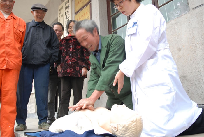 在七里鄉(xiāng)給留守老人培訓(xùn)急救知識