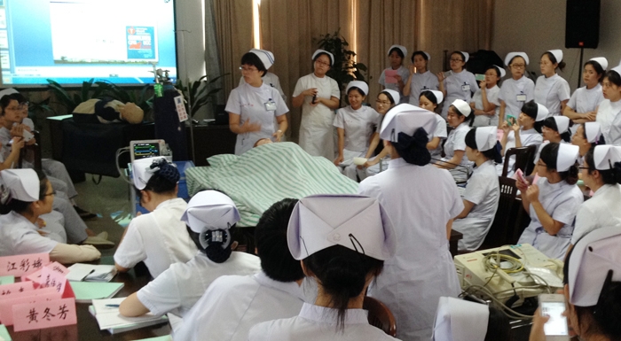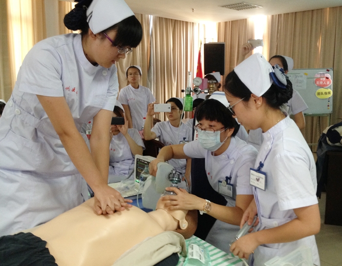 ??? 當我和同事們參與這次與眾不同的課堂心肺復蘇示教,看到包括心肺復蘇、呼吸皮囊應用、麻醉插管的配合、靜脈通路的開放等的這樣一個貼合實際、詳細的院內急救流程時,先前對于現(xiàn)實搶救的種種疑慮終于有了答案。尤其是我擔任模擬急救護士角色,參與了從發(fā)現(xiàn)病情到搶救成功的整個過程,深切地體會到在臨床搶救時團隊力量的重要,有條不紊地配合是各項操作得以順利進行的關鍵。