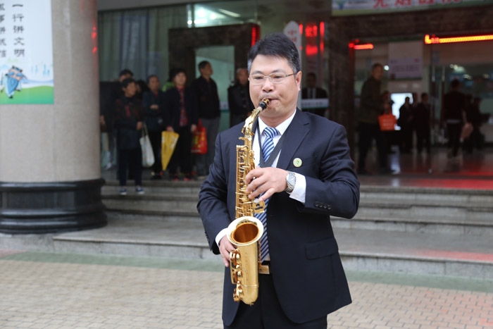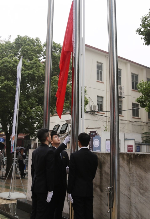 一曲《我愛你中國》薩克斯演奏拉開了序幕,由院領(lǐng)導(dǎo)班子、臨床一線醫(yī)護(hù)人員代表、行政后勤員工、社會志愿者代表等組成的各大方隊共同列隊演唱。隨后,全體人員向國旗行注目禮,唱國歌,升旗儀式莊嚴(yán)隆重。在院歌聲中,有著扎根衢州、齊心協(xié)力、攜手同行寓意的我院院旗也隨之升起。