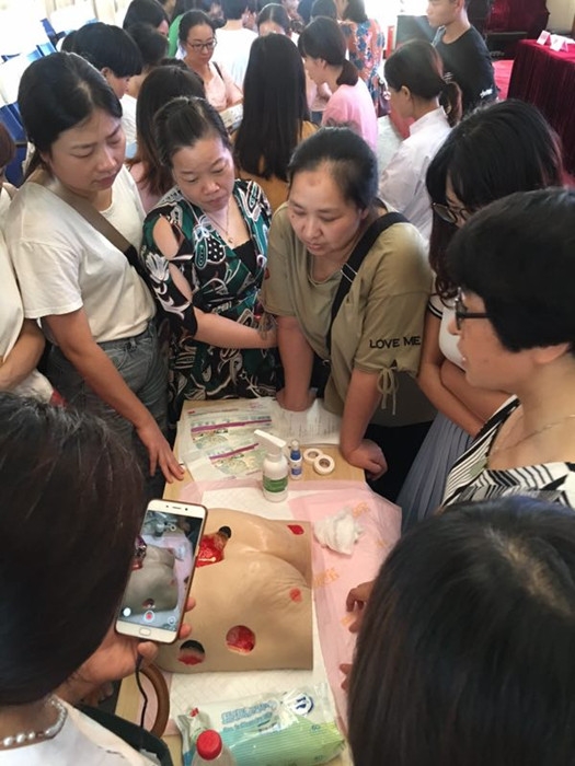 ??? 同時(shí),會(huì)議以“工作坊”的形式讓參會(huì)者進(jìn)行零距離交流與探討,通過(guò)仿真模型演示,我院傷口、造口專科護(hù)士手把手地指導(dǎo)失禁性皮炎的處理, 學(xué)員們紛紛表示受益匪淺。