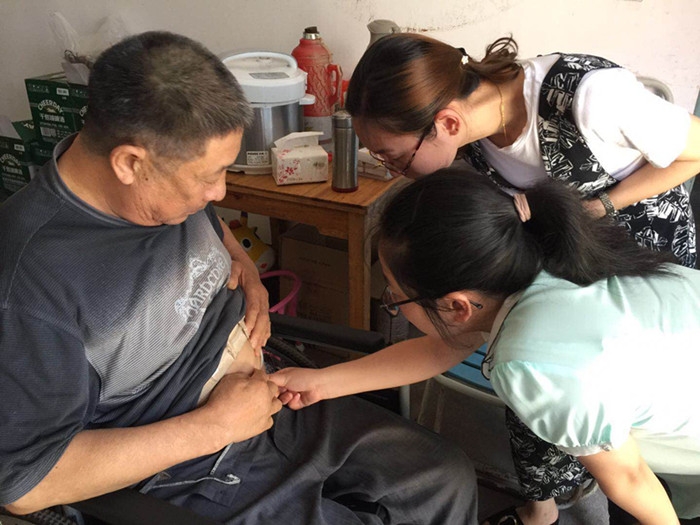 ????在腹透腎友家中,醫(yī)護(hù)人員看到患者經(jīng)過(guò)治療能回歸到日常的生活中,感到十分欣慰,同時(shí),給予腹透腎友專(zhuān)業(yè)的指導(dǎo),如:評(píng)估腹透患者的透析環(huán)境、指導(dǎo)紫外線燈的安裝使用方法;了解患者換液操作是否規(guī)范,透析日記本是否及時(shí)記錄;檢查每位患者的出口處皮膚及下肢有無(wú)水腫等情況,強(qiáng)調(diào)規(guī)范換藥的重要性;詢問(wèn)患者的飲食、血壓、尿量、體重及服藥情況;整理患者的家庭備用藥品,查看藥品有效期,詢問(wèn)服藥后有無(wú)不良反應(yīng),并告知在服藥期間的注意事項(xiàng)等。同時(shí),針對(duì)患者的不同情況,醫(yī)護(hù)人員進(jìn)行了個(gè)性化指導(dǎo)。