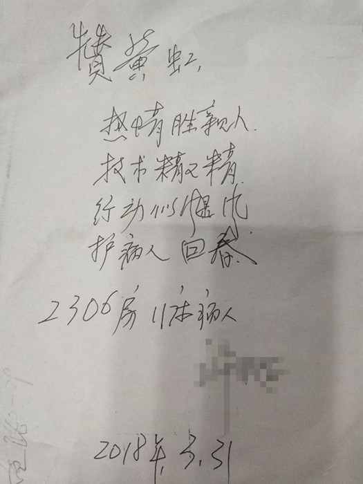 ??? 一封手寫的感謝信讓我們看到,在平凡的工作中,醫(yī)護(hù)人員用耐心真誠能與患者建立良好的醫(yī)患關(guān)系。