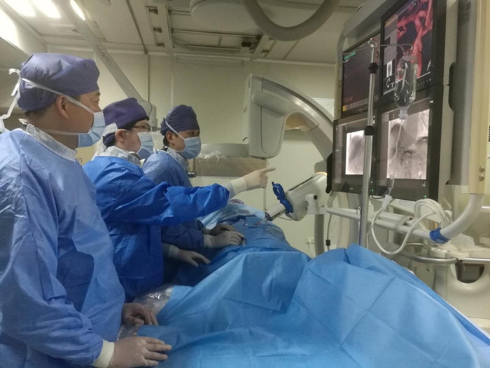 ??? 這時,血管外科程國兵醫(yī)師及時加入到搶救隊伍中。肝膽外科和血管外科團隊一起為張大爺急診施行了TACE聯(lián)合腸系膜上動脈支架植入術(shù)。手術(shù)很成功,術(shù)后張大爺病情逐漸平穩(wěn)。