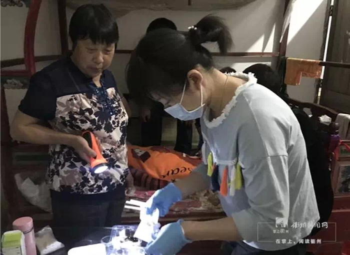 ??? 這可怎么辦呢?吳女士突然想起以前在菜場門口賣草莓時(shí),聽說旁邊超市老板的女兒是我院急診科的護(hù)士王榮。顧不上別的了,5月23日一早,吳女士就騎著電瓶車找到了王榮,剛好王榮休息在家,一聽老太太的情況,她馬上驅(qū)車趕到醫(yī)院買了導(dǎo)尿管,上門為老太太插尿管。