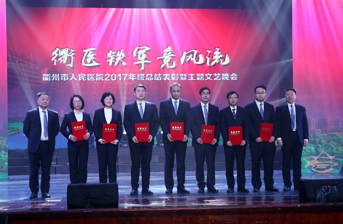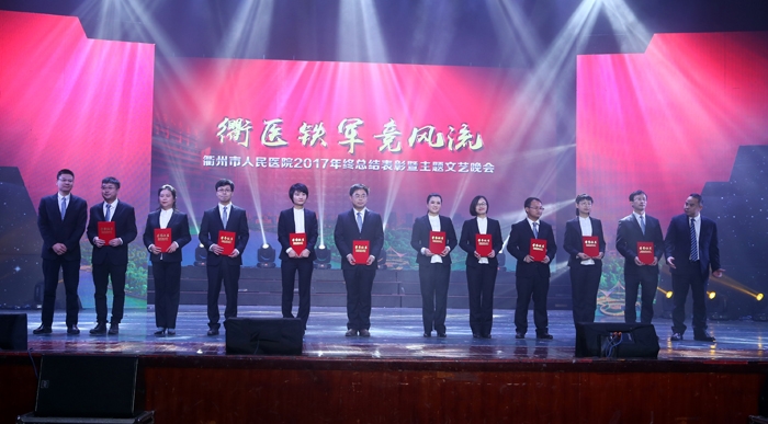 ? ? ? 平凡鑄就輝煌,堅守成就夢想。晚會還進(jìn)行了衢醫(yī)鐵軍以及先進(jìn)集體、先進(jìn)職工頒獎。其中,骨科團(tuán)隊、麻醉科團(tuán)隊、ICU團(tuán)隊、感染科團(tuán)隊、消化內(nèi)鏡中心護(hù)理團(tuán)隊、質(zhì)控處、基建處,以及放射科醫(yī)師楊小軍、病理科主任林軍、內(nèi)分泌科護(hù)士長陳育群等十個團(tuán)隊和個人獲得了“衢醫(yī)鐵軍”稱號。另外,一批技術(shù)精湛、醫(yī)德高尚、紀(jì)律嚴(yán)明、群眾滿意的先進(jìn)科室和個人也受到了表彰。