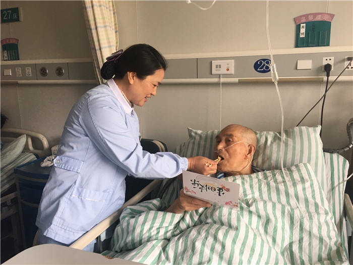 ??? 當(dāng)護(hù)士長(zhǎng)帶領(lǐng)護(hù)士們端著準(zhǔn)備好的長(zhǎng)壽面來(lái)到他床邊,祝福他生日快樂(lè)時(shí),老人家激動(dòng)地說(shuō):“我自己都忘記了今天是我的生日,你們竟然記著,太有心了,謝謝你們!”