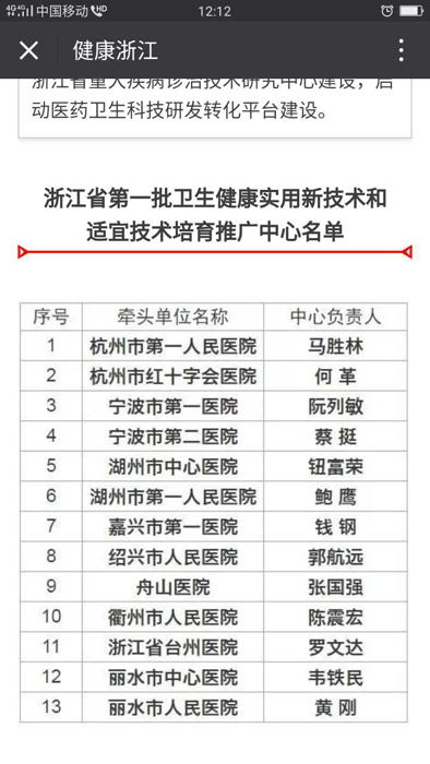 ????9月20日,浙江省衛(wèi)生計(jì)生委公布了第一批浙江省衛(wèi)生健康實(shí)用新技術(shù)和適宜技術(shù)培育推廣中心名單,全省一共有13家單位入圍,我院光榮上榜。