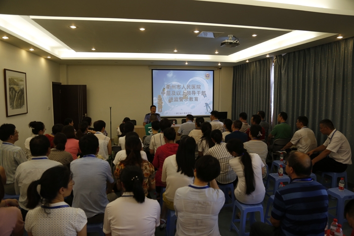 ??? 為了深入開展黨的群眾路線教育實踐活動,進一步加強黨風廉政建設,切實提高干部職工的廉政自律意識和拒腐防變能力, 7月13日和14日下午,我院組織中層及以上干部和關鍵崗位的工作人員共120余人到衢州市十里豐監(jiān)獄開展廉潔自律警示教育活動。