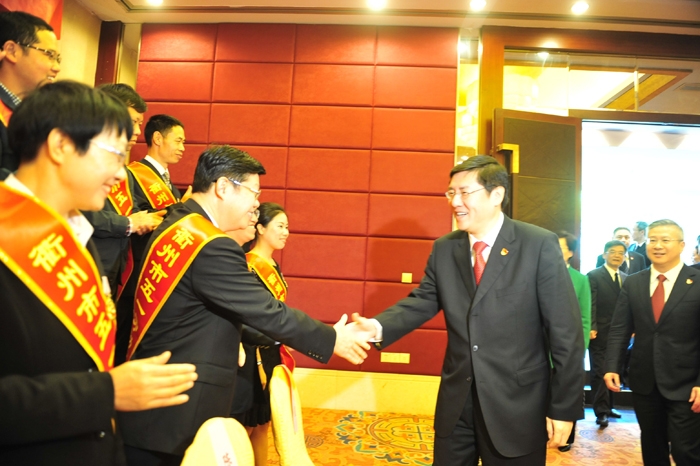 ??? 歷屆勞模代表為全市勞模頒發(fā)榮譽(yù)證書