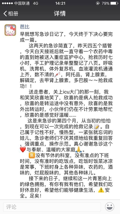 ??? 近日,我院急診科一位護士在朋友圈寫的一篇急診日記引來了眾多網(wǎng)友紛紛點贊。