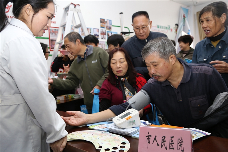 ??? 健步走活動結(jié)束,輪到醫(yī)護(hù)人員上場了。市疾控中心、市人民醫(yī)院、市中醫(yī)院、市婦保院、市三院等單位的白衣天使們,在社區(qū)內(nèi)義診,接受咨詢: