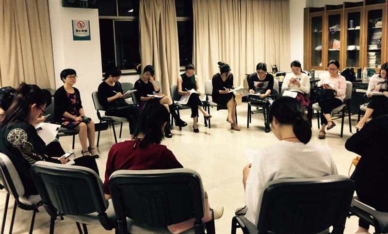 ??? 張麗萍在三天的授課中,先讓大家欣賞臺(tái)灣文化智者廖志祥先生的詩咒“相即”“本愿”“愛著”,從而為之后的“意象對(duì)話”之旅做鋪墊。每節(jié)的團(tuán)體輔導(dǎo)課堂,組員們都積極參加互動(dòng),敞開心扉分享心得。