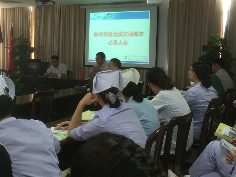 ??? 黨委書記徐天才指出強調(diào),要在全院營造文明創(chuàng)建氛圍,做到全員動員,人人知曉,人人參與。院長陳震宏最后強調(diào),下步將由院領(lǐng)導(dǎo)帶隊強化督查,各部門要一如繼往地做好創(chuàng)建工作,嚴(yán)格按照工作要求,細(xì)化措施,做好自助服務(wù)引導(dǎo)、服務(wù)態(tài)度、健康宣教等工作,確??荚u要求逐一落實到位。