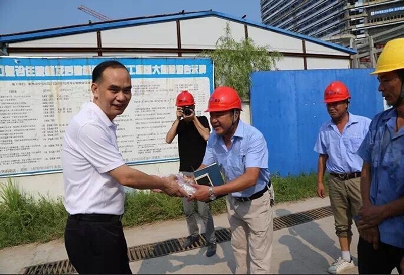 ??? 在工地現(xiàn)場,酷暑下建筑工人們熱火朝天地忙碌著。陳錦標詳細詢問了建筑工人的工作和生活情況,并為他們送上防暑降溫用品。希望各部門落實好降溫防暑的各項工作,確保施工安全。