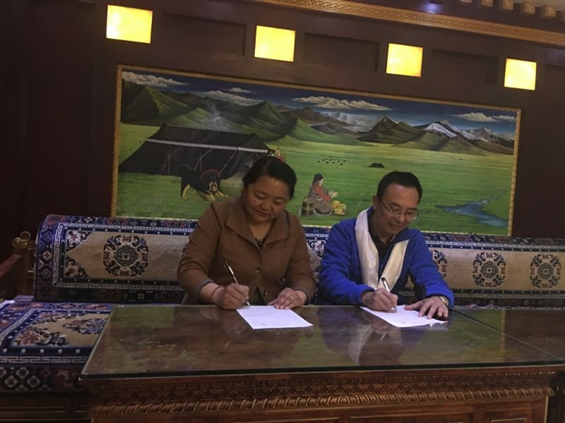 ??? 胡建邦副院長(zhǎng)與那曲地區(qū)人民醫(yī)院索朗央金書(shū)記簽訂兩院眼科學(xué)科互助幫扶協(xié)議書(shū)。
