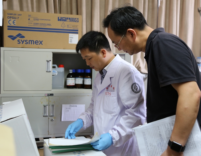督察組工作人員查看我院安全生產臺賬資料后,分三組實地察看,醫(yī)療安全組對急診科、腫瘤內科、檢驗室、醫(yī)療廢物回收點等地進行全面檢查;消防安全組對消防樓梯、門診大廳、水泵房等重點部門進行系統(tǒng)排查;后勤安全組走訪供水、供電、供氧、食堂等地重點核查。