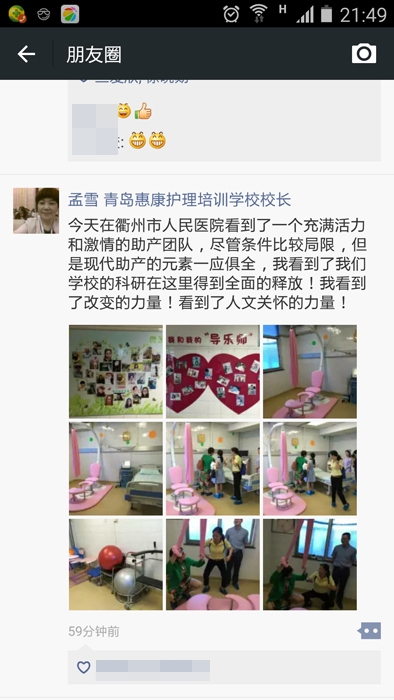 ??? 參觀過程中孟雪教授對我院開展的自然分娩(自由體位分娩、導(dǎo)樂陪伴、非藥物分娩鎮(zhèn)痛)及母乳喂養(yǎng)等服務(wù)給予了肯定。她說她看到了一個(gè)充滿活力和激情的助產(chǎn)團(tuán)隊(duì),盡管條件受限,但現(xiàn)代助產(chǎn)的元素一應(yīng)俱全。