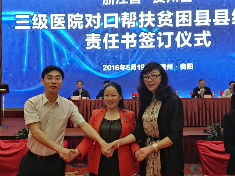 ??? 5月19日,市衛(wèi)生計生委黨委委員張福俊帶隊,我院黨委書記徐天才一行4人趕赴貴陽,參加浙黔兩省第三輪浙江省三級綜合醫(yī)院對口幫扶貴州省貧困縣縣級醫(yī)院責(zé)任書簽訂儀式暨2016年醫(yī)院管理培訓(xùn)。