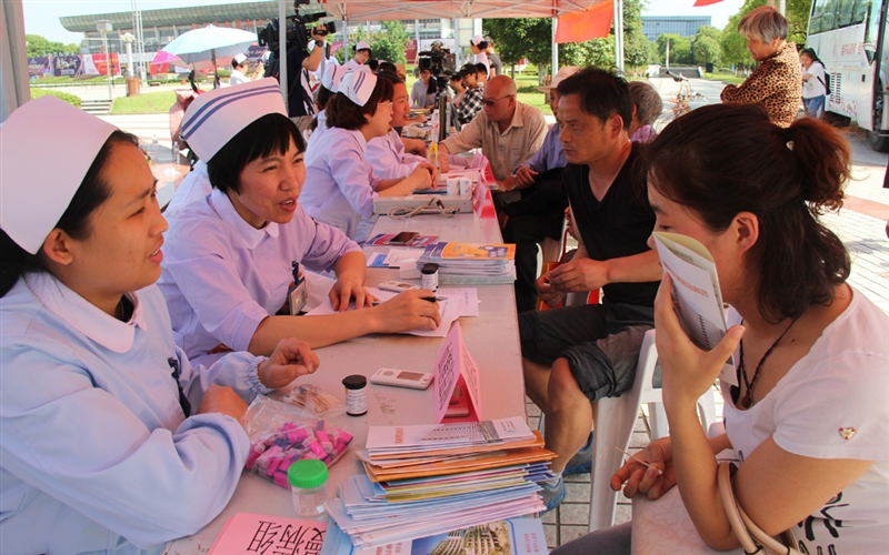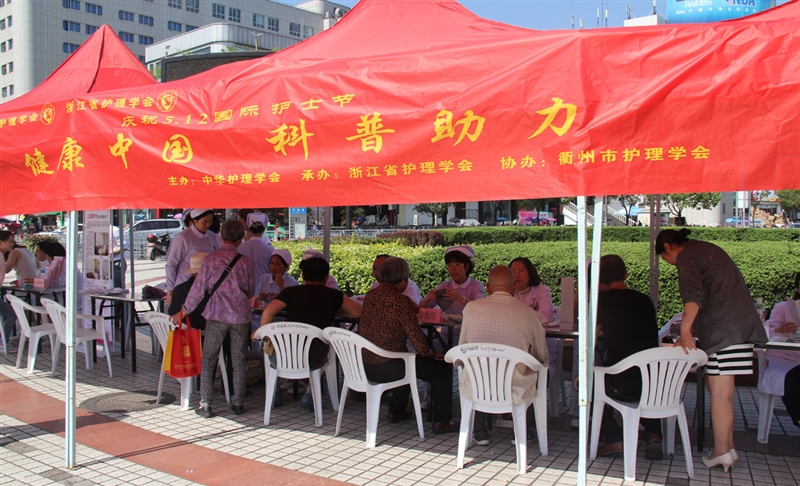 ??? 5月12日下午14:00,衢州市護理學會組織衢州市人民醫(yī)院、衢州市中醫(yī)院、衢州市第三醫(yī)院、衢州市婦保醫(yī)院的25名醫(yī)護人員在火車站廣場進行“健康中國 科普助力”的義診活動?;顒蝇F(xiàn)場的醫(yī)務(wù)人員分為母嬰保健組、慢病宣傳組、急救知識普及組及中醫(yī)康復護理組等,根據(jù)各自的專業(yè)知識進行義診及科普知識宣傳。