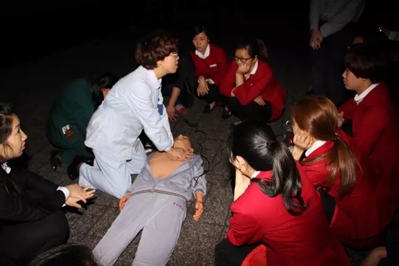 ??? 4月20日和21日的上午,衢州市人民醫(yī)院護士志愿者們來到宏泰電影大世界和時代金球影城,為影城的員工們進行常見急癥(冠心病、暈厥、癲癇)的識別與現(xiàn)場應急處理培訓。詳細講解并示范現(xiàn)場心肺復蘇技術,指導在場每位學員在心肺復蘇模擬人上進行徒手胸外心臟按壓與口對口人工呼吸操作。