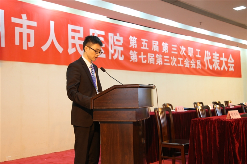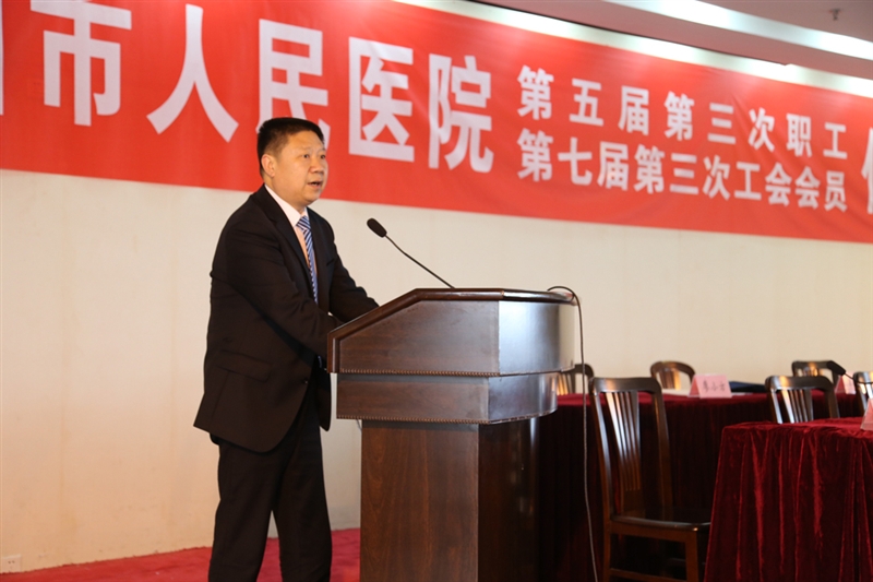 ??? 會議中,院長陳震宏做《醫(yī)院工作報告》,院黨委書記徐天才作《醫(yī)院“十三.五”發(fā)展規(guī)劃》、副院長王巨宏作《醫(yī)院財務工作報告》、工會主席周見作《醫(yī)院工會工作報告》、經審委主任徐琴作《醫(yī)院工會經費審查工作報告》、人事處長汪英俊作《醫(yī)院晉升高級職稱推薦辦法(修改稿)》的說明、財務處長沈紅作《醫(yī)院績效分配方案》的說明、工會委員胡澤富作《醫(yī)院提案工作報告》。