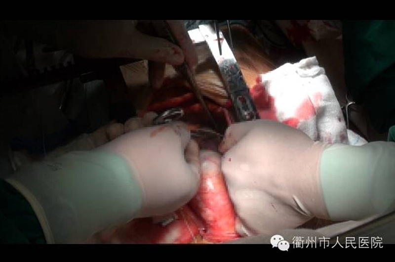 ??? 經(jīng)過精心的術(shù)前準(zhǔn)備,3月13日,由浙一醫(yī)院心外、麻醉、體外循環(huán)、監(jiān)護(hù)組成的5人專家團(tuán)隊和我院心胸外科團(tuán)隊一起,為杜女士實施手術(shù)。全麻建立體外循環(huán)后,手術(shù)按原方案順利進(jìn)行,然而切開瘤樣擴張直徑達(dá)7.2厘米的升主動脈時發(fā)現(xiàn),主動脈瓣葉上布滿了贅生物,病情比術(shù)前想象的要復(fù)雜得多:患者同時有感染性細(xì)菌性心內(nèi)膜炎伴贅生物形成!病情復(fù)雜,給手術(shù)增加了難度,對術(shù)后康復(fù)及遠(yuǎn)期療效都是一個嚴(yán)峻的挑戰(zhàn)。知難而上!經(jīng)過專家團(tuán)隊和我院心胸外科、麻醉科、手術(shù)室等醫(yī)護(hù)人員的密切配合與積極處置,歷經(jīng)6個小時,手術(shù)順利完成。