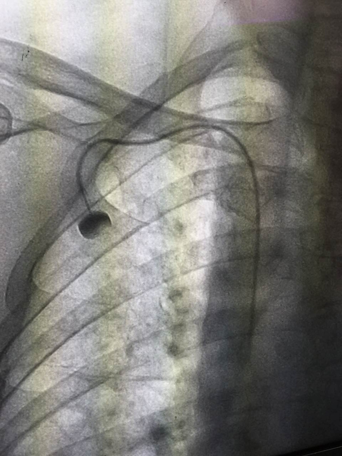 ??? 2月26日,我院腫瘤內(nèi)科成功開展了首例植入式靜脈輸液港技術(shù),僅在患者胸部皮膚下植入一枚紐扣大小的“靜脈輸液港”,便可解決患者因反復輸液導致無血管可扎或長期輸液導管留置的問題。