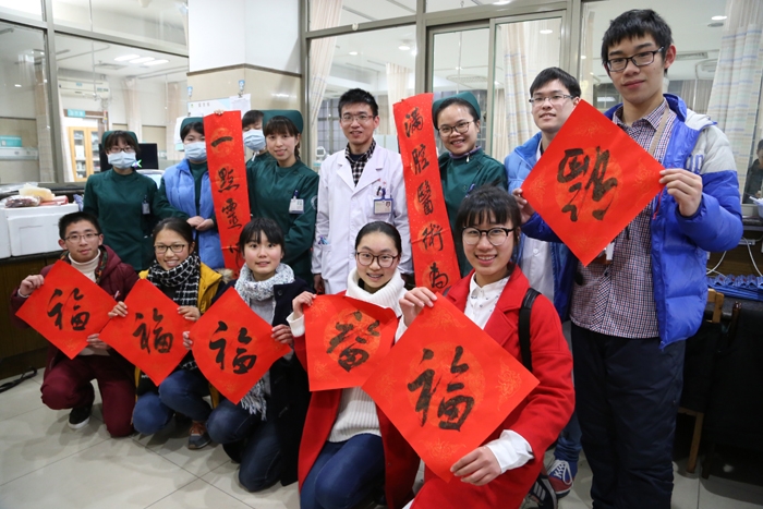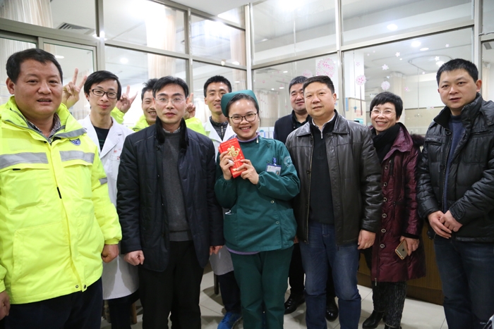 ??? 在舉家團圓的日子,也有很多身患疾病而無法回家團圓的患者只能無奈的在醫(yī)院住院治療。如何讓這些患者也能享受到新春佳節(jié)的團圓氣氛,過一個溫馨祥和的春節(jié),急診科的科主任、護士長等醫(yī)護人員組成慰問小組,來到每位患者的床前,并為他們送上小禮物和新春的祝福。