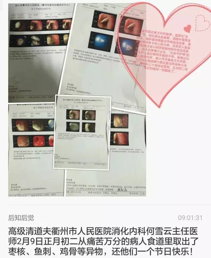??? 對(duì)于消化內(nèi)科醫(yī)生來說春節(jié)就是“農(nóng)忙季”,酒精中毒、消化道出血、重癥胰腺炎、食道異物等病危病重患者接踵而至;消化內(nèi)科、內(nèi)鏡中心的醫(yī)護(hù)人員共為9位患者在胃鏡下取出了棗核、雞骨頭、魚刺等異物,還他們一個(gè)快樂的節(jié)日。