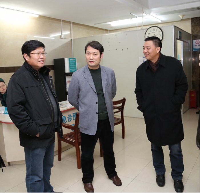 ??? 1月22日下午,市政府副秘書(shū)長(zhǎng)季根壽來(lái)我院檢查指導(dǎo)寒潮和雨雪冰凍災(zāi)害天氣防御應(yīng)對(duì)工作,市衛(wèi)計(jì)委黨委委員、副調(diào)研員張??。洪L(zhǎng)陳震宏陪同檢查。